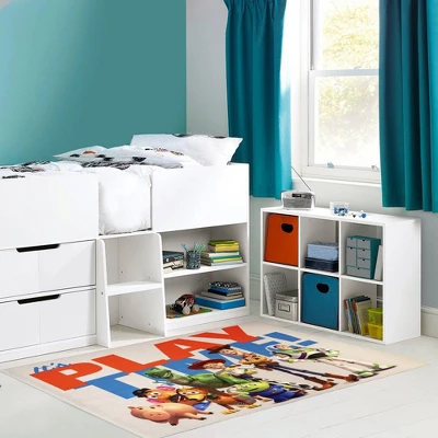 Join Buzz Lightyear, Woody and all your favorite Toys for Play Time with this jumbo sized area rug. Digitally printed for exceptional color and detail, the rug measures 4’6″x6’6″ and features a canvas backing for added durability and stability. Perfect for the bedroom, playroom, den or any room this rug is sure to delight fans of all ages.