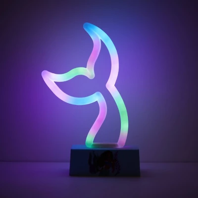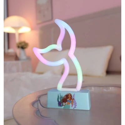 Add a touch of masterpiece to your decor with the Disney Little Mermaid LED neon lamp. Featuring a unique and creative design of the iconic brand, this lamp is the perfect way to light up your child’s bedroom, playroom, or study area. It is an excellent decorative accent and is small enough to fit onto any desk or side table. It features a blue durable base with a decorative colorful design of Little Mermaid’s tail. Lamp measures 8.27” H x 5.55” W x 1.69” D. No assembly is required.