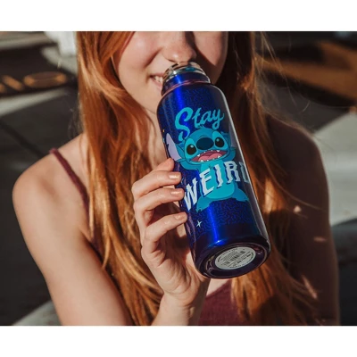 - TRENDY DRINKWARE: Screw-top lid water bottle features a blue background and features Stitch with the text “Stay Weird”.