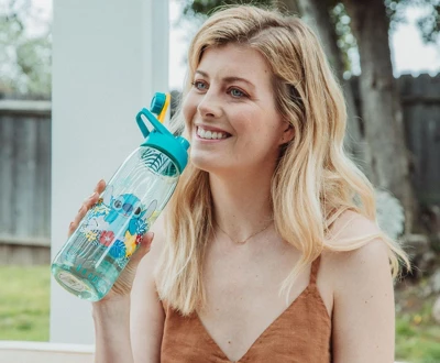 - FUN DESIGN: Clear water bottle features an image of the adorable blue alien Stitch from the Disney classic, Lilo & Stitch!